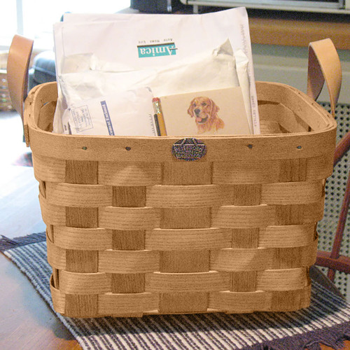 The Peterboro Personal Matters Storage Basket is the ideal storage space for your owner’s manuals, schoolbooks, important documents, magazines, and other personal items. It will control your unwanted clutter without sacrificing your style. This beautiful hardwood ash basket features two genuine leather handles, secured with solid brass rivets for additional support and strength. It will easily hold 50 lbs.